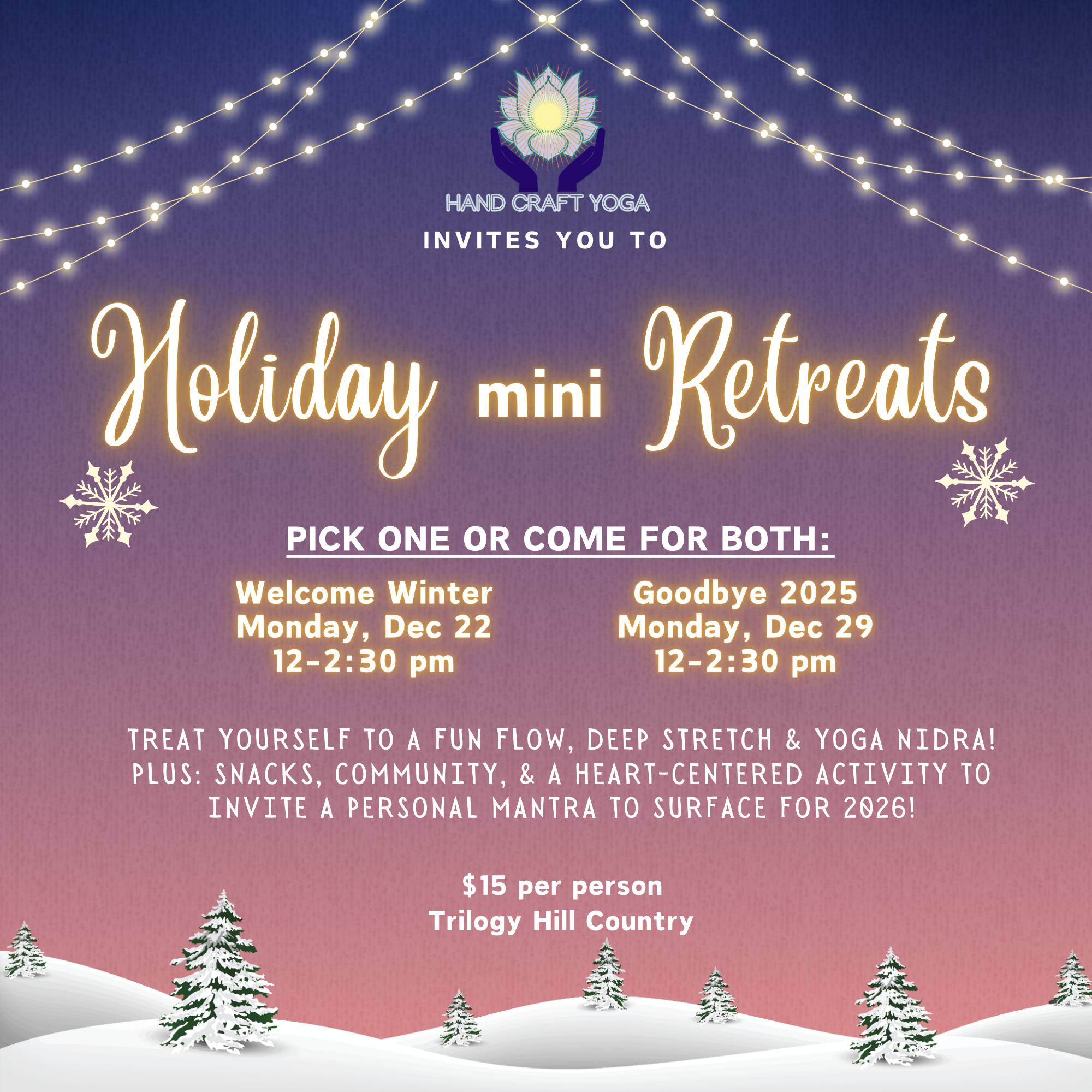 TGID I cannot believe we are already stepping into the very last month of the year. I saw somewhere that December is like the Friday of the year, and honestly… I feel that. There is this playfulness, a softening around the edges, and an invitation to have a deep exhale. With that in mind, I want to share a quick update about our schedule for the end of the year. There will be no "regular schedule" classes on December 22, 24, 29, or 31 (the last 2 weeks of the year). But I am excited to offer...